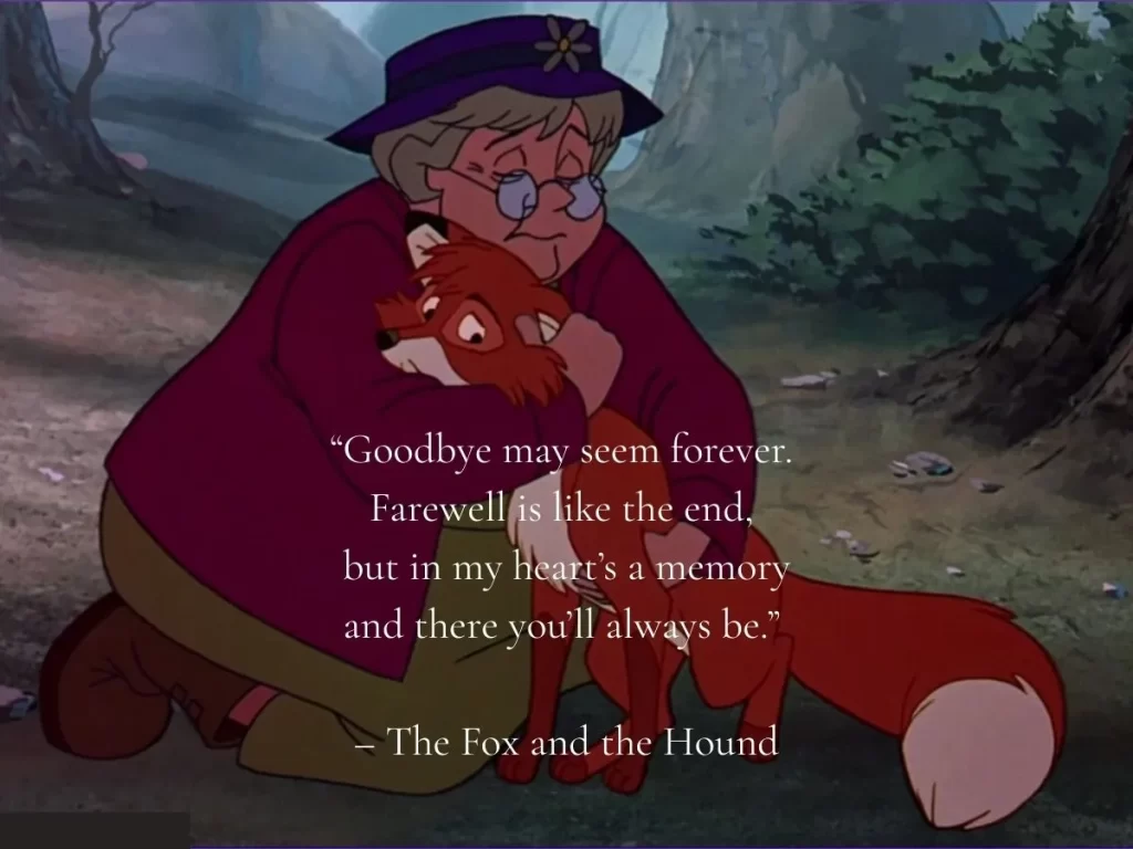 - “Goodbye may seem forever. Farewell is like the end, but in my heart’s a memory, and there you’ll always be.” – The Fox and the Hound